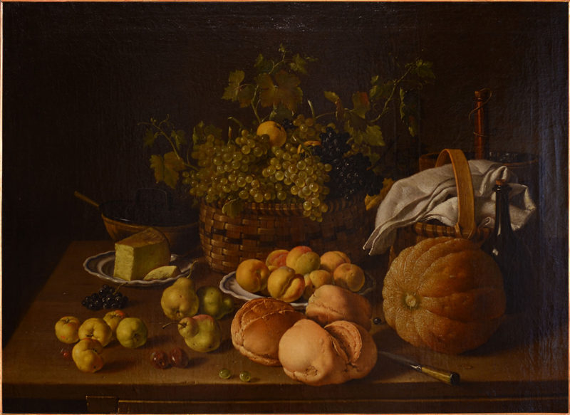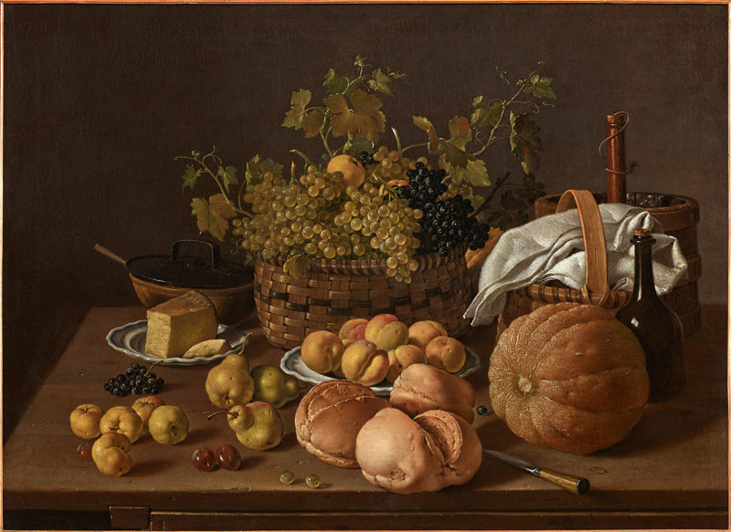 AutorLuis Egidio MeléndezTécnicaÓleo sobre lienzo Luis Egidio MeléndezBodegón con enfriador, panes, queso y frutas