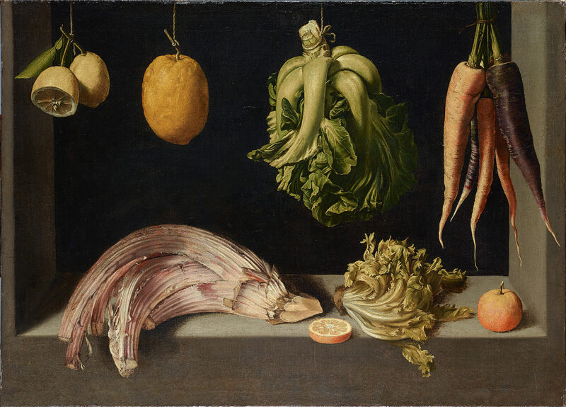 AutorJuan Sánchez CotánTécnicaÓleo sobre lienzo Juan Sánchez CotánBodegón con frutas y verduras, ca. 1602