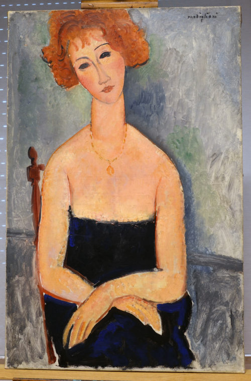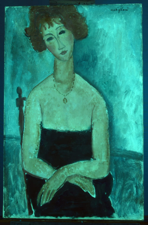 AutorAmedeo ModiglianiTécnicaÓleo sobre lienzo Imagen con luz ultravioletaAmedeo ModiglianiLa pelirroja con el colganteAqui un texto que explica el proceso general del proyecto