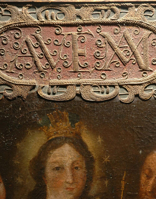 Interesante pieza que imita el trabajo del cordobán en el marco fingido. Tras la restauración