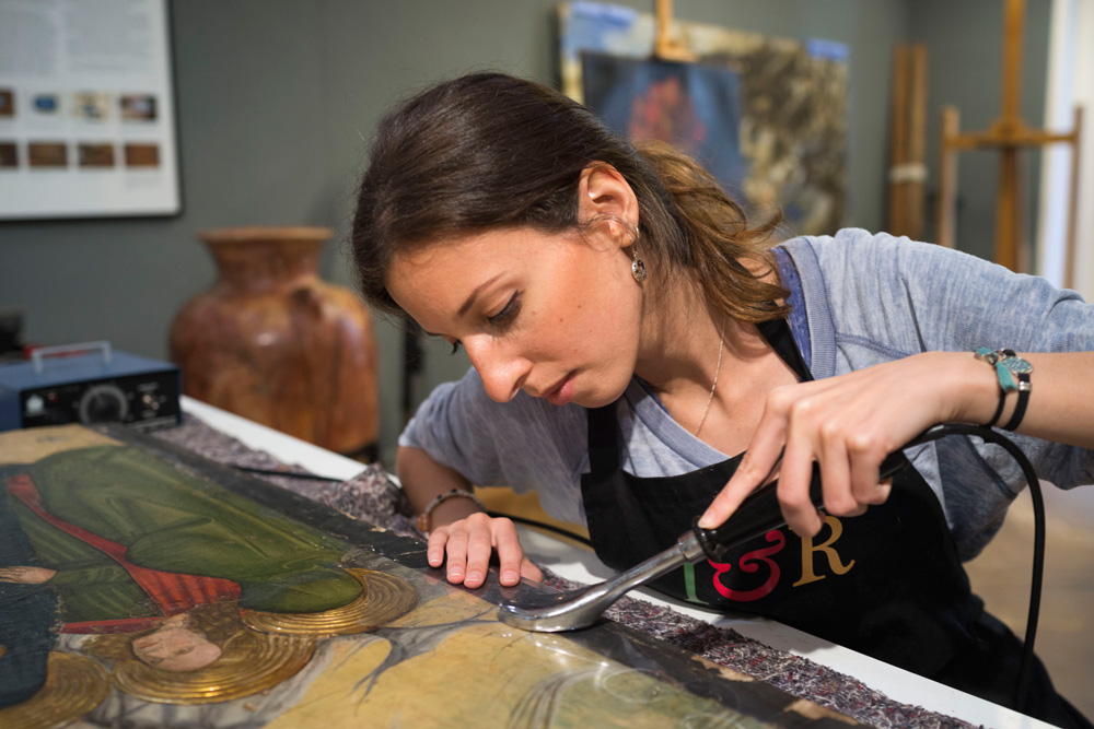 - Apoyo técnico para profesionales de la conservación-restauración [tratamientos en mesa de succión, barnizado de obras, estudios técnicos y analíticos…]